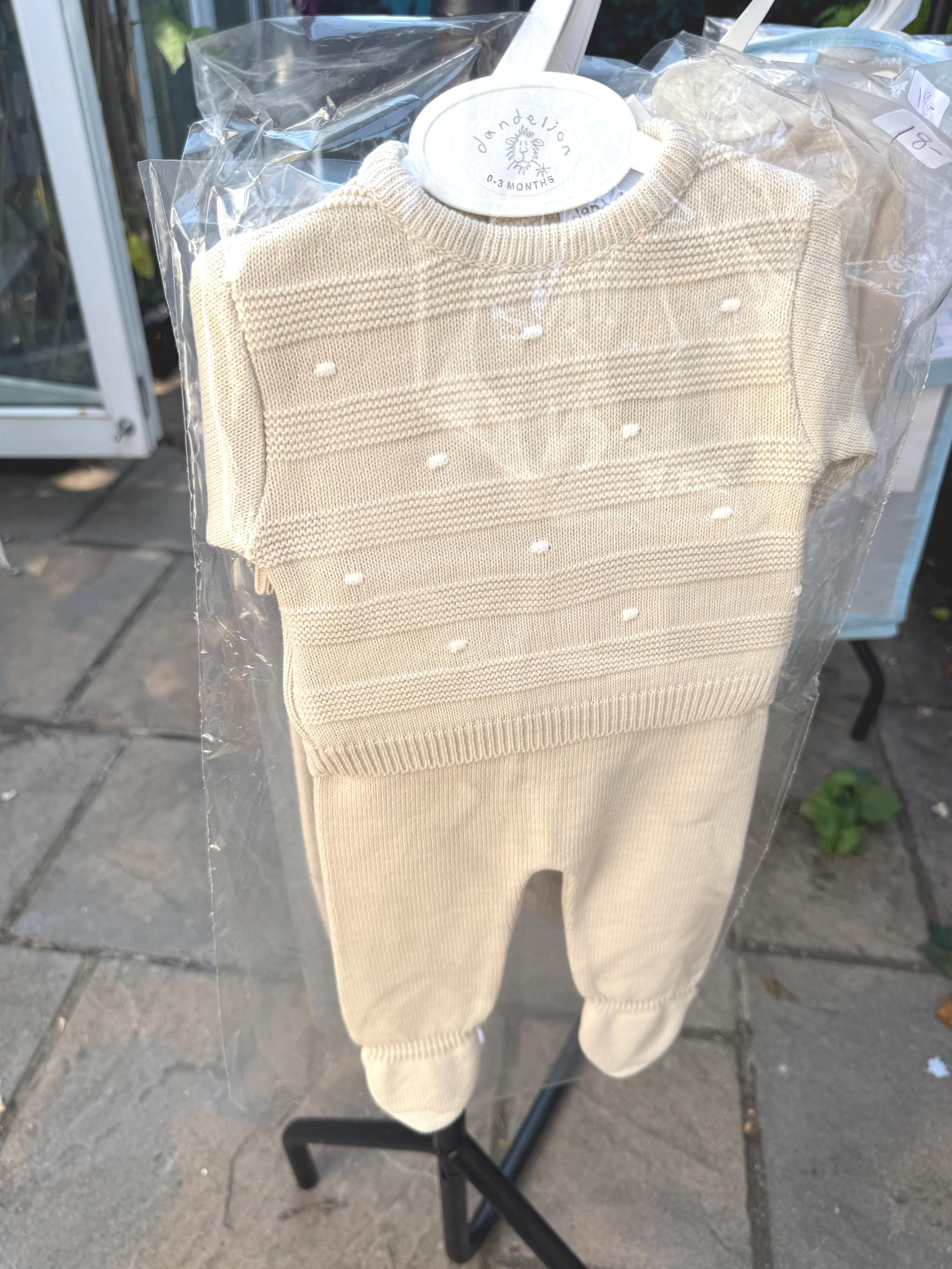 raised dotted set top, trousers and hat